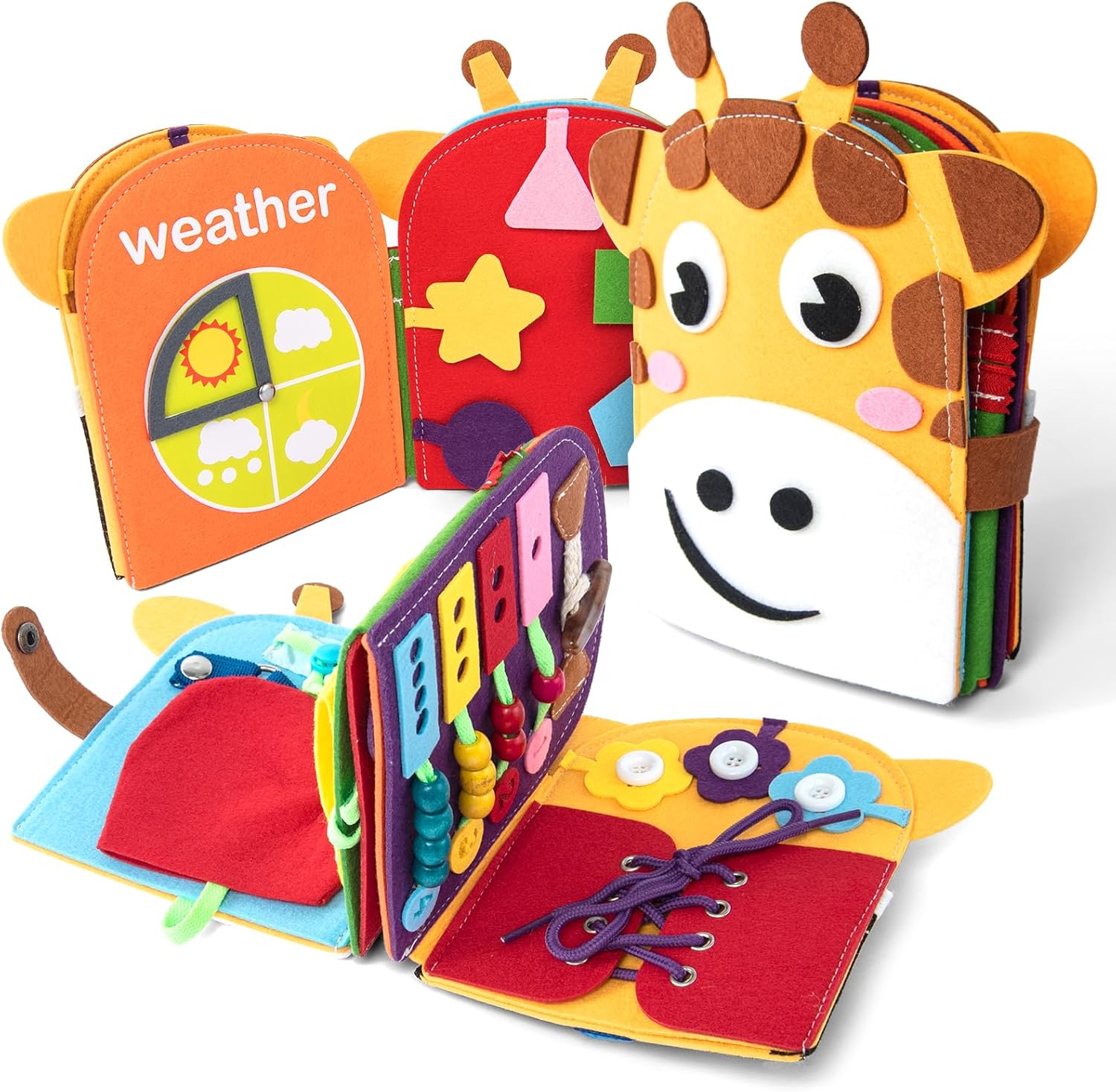 The quiet and silent design, perfectly reasonable size and weight make our giraffe felt book perfect for carrying on the go, suitable for long trips, churches, restaurants, airplanes and other scenarios. If you are worried that your baby will easily get bored with traditional baby toys that do not help their intellectual development and have a single way to play, then our quiet book is just what you need to grab your tiny one's attention and introduce him/her to a whole new world of fun.