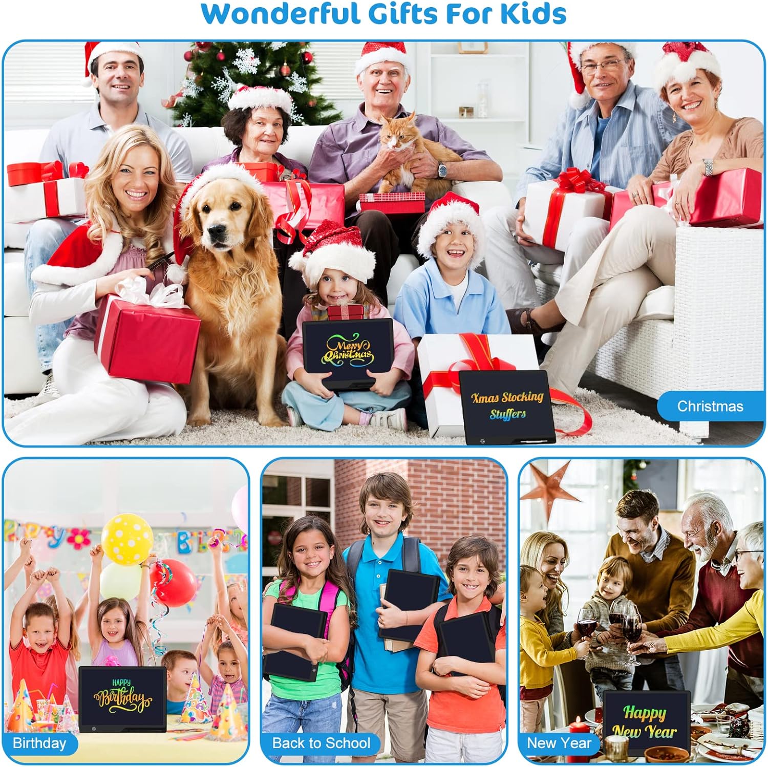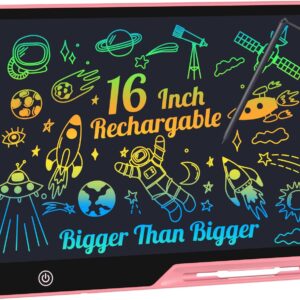 LCD Writing Tablet,16 Inch Colorful Screen Rechargeable Doodle Board Toddler Educational Toys for 3 4 5 6 Years Old Boys Girls Reusable Portable Drawing Tablet Christmas Toys Gifts for Kids (Black)