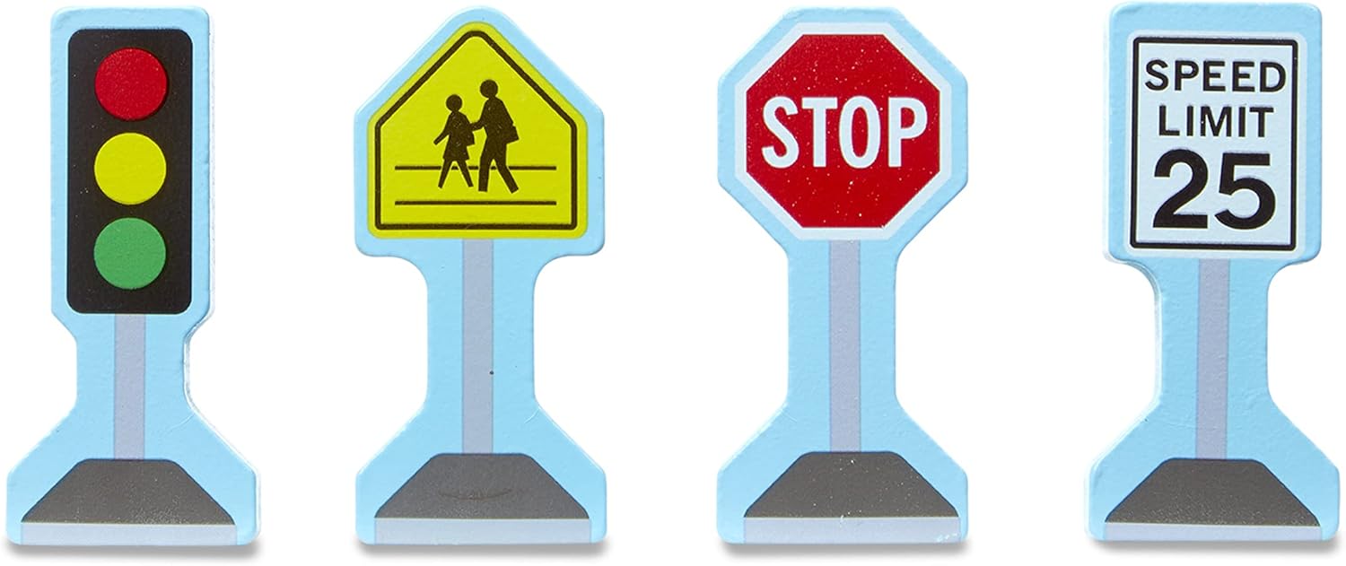 Melissa & Doug 18-Piece Wooden Take-Along Tabletop Town, 4 Rescue Vehicles, Play Pieces, Bridge quantity
